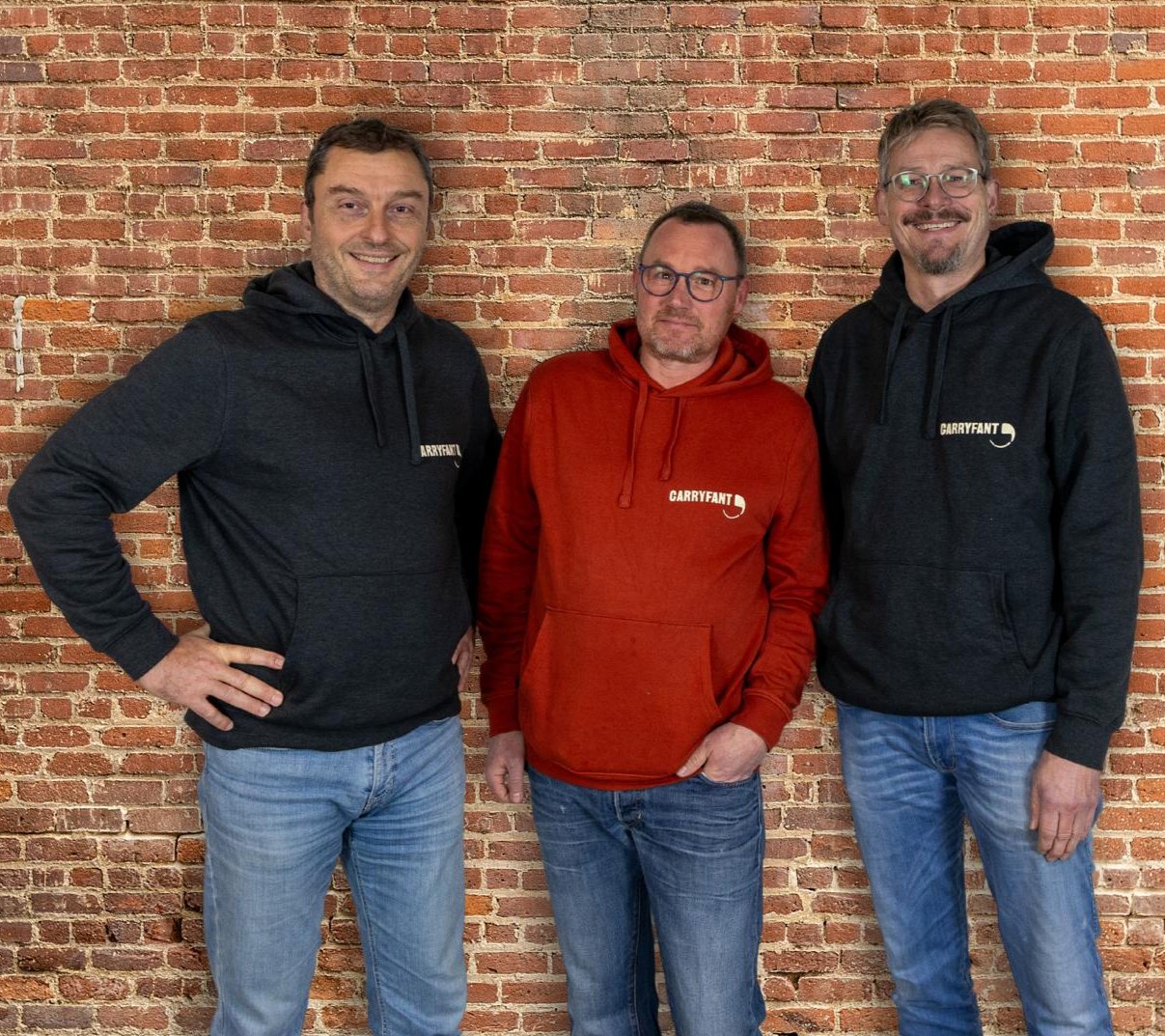 Hinter Carryfant stehen Patrick Wolff, Peter Stamm und Olaf Knopp.